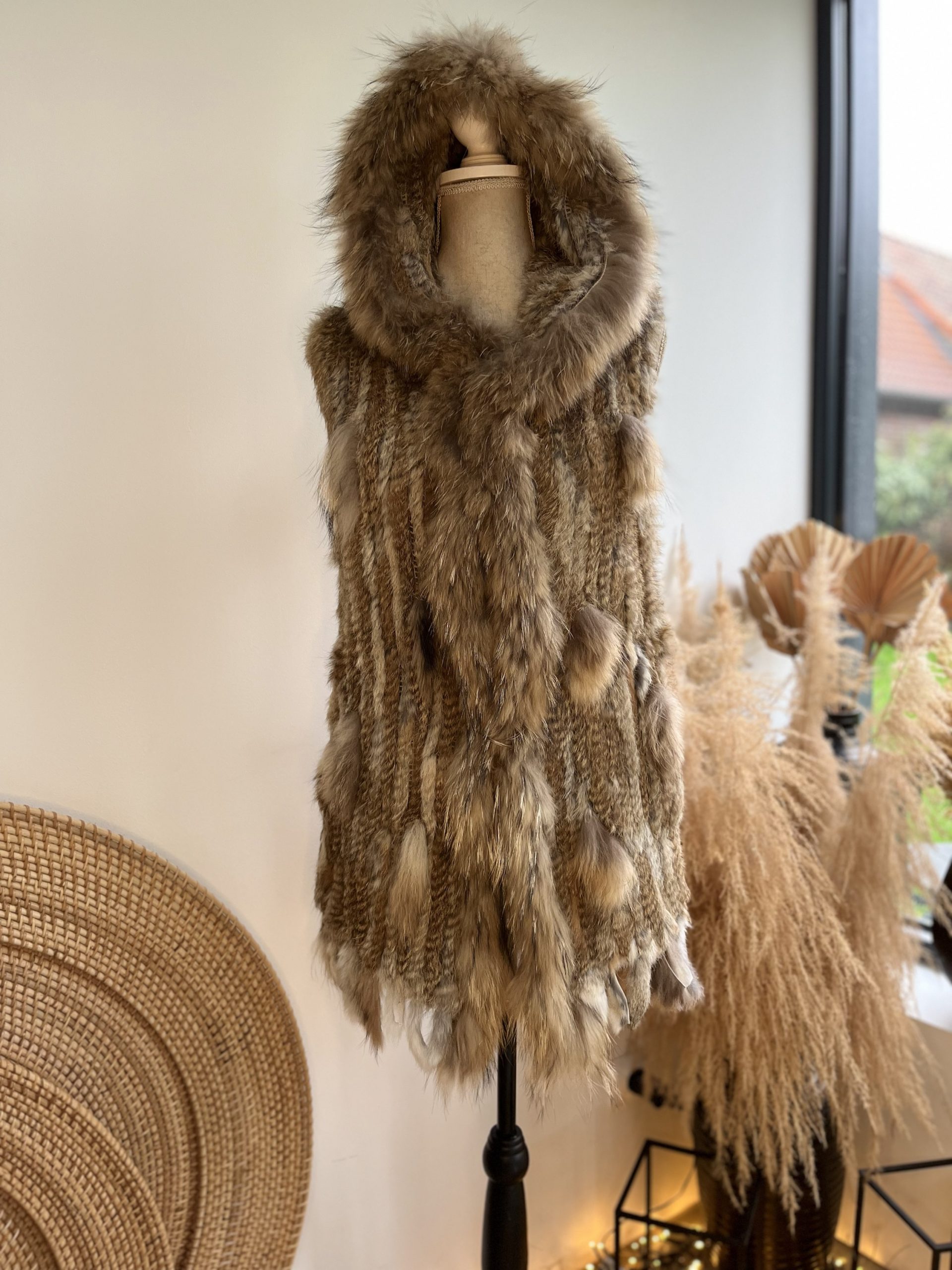 Gilet long avec capuche lapin et raton laveur